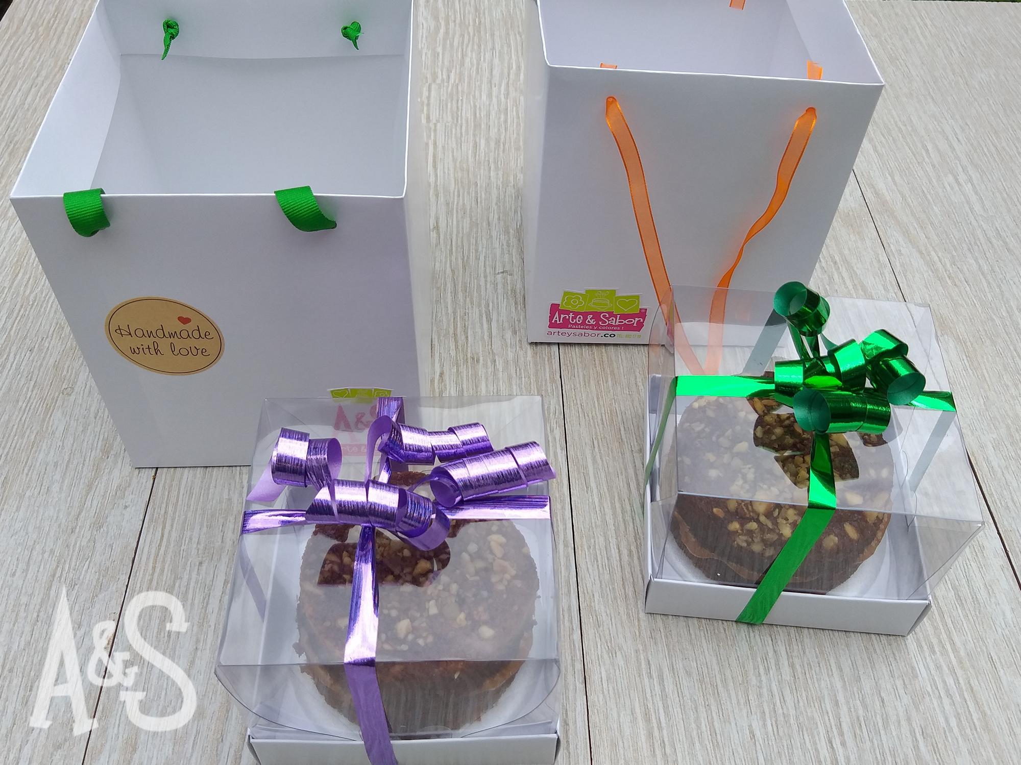 Torta de zanahoria y piña, con nueces por encima, para dos porciones, empacada en caja regalo. Puede ir con y sin arequipe en la mitad!!! como mas te guste!!!
