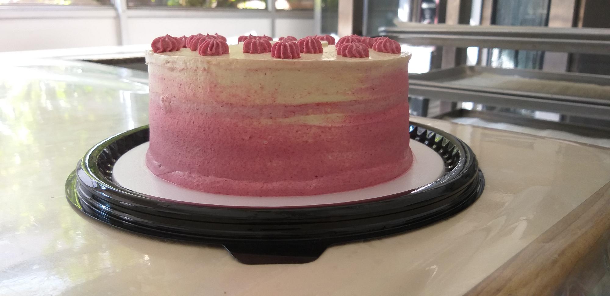 Torta con nuestra clásica masa de vainilla rellena y cubierta con crema de mora, perfecta para cumpleaños y momentos especiales. Tiene nuestra marca comestible de Arte & Sabor!!!